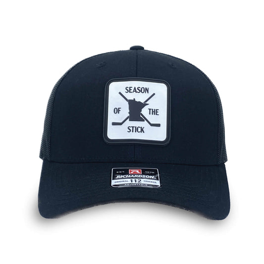 Trucker hat Heather Gray with Hockey inspired Season of the Stick rubber patch