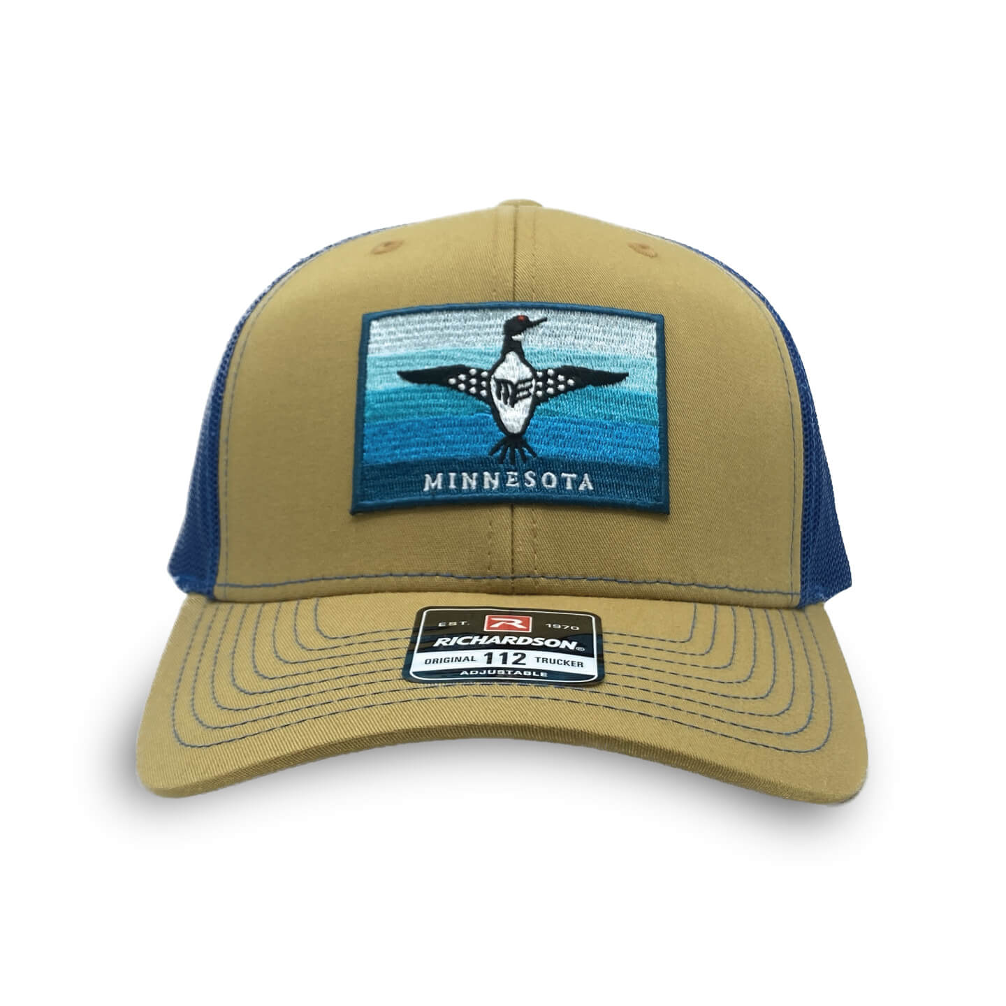 Show your love for Minnesota with this Richardson 112 hat featuring a blue loon embroidery patch. The 6-panel biscuit and true blue trucker hat is one size fits all with a snapback. Perfect for any outdoor adventure in the North Star State!