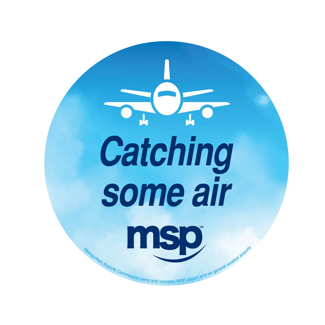 MSP Catching Some Air Sticker Here’s to launching into high-flying plans from your fave airport! Add this sticker to your water bottle or journal — and pat yourself on the back, since your purchase supports the Airport Foundation MSP mission of enhancing the experience and exceeding the expectations of travelers at MSP Airport. Permanent UV-coated gloss-finish vinyl sticker is 4".
