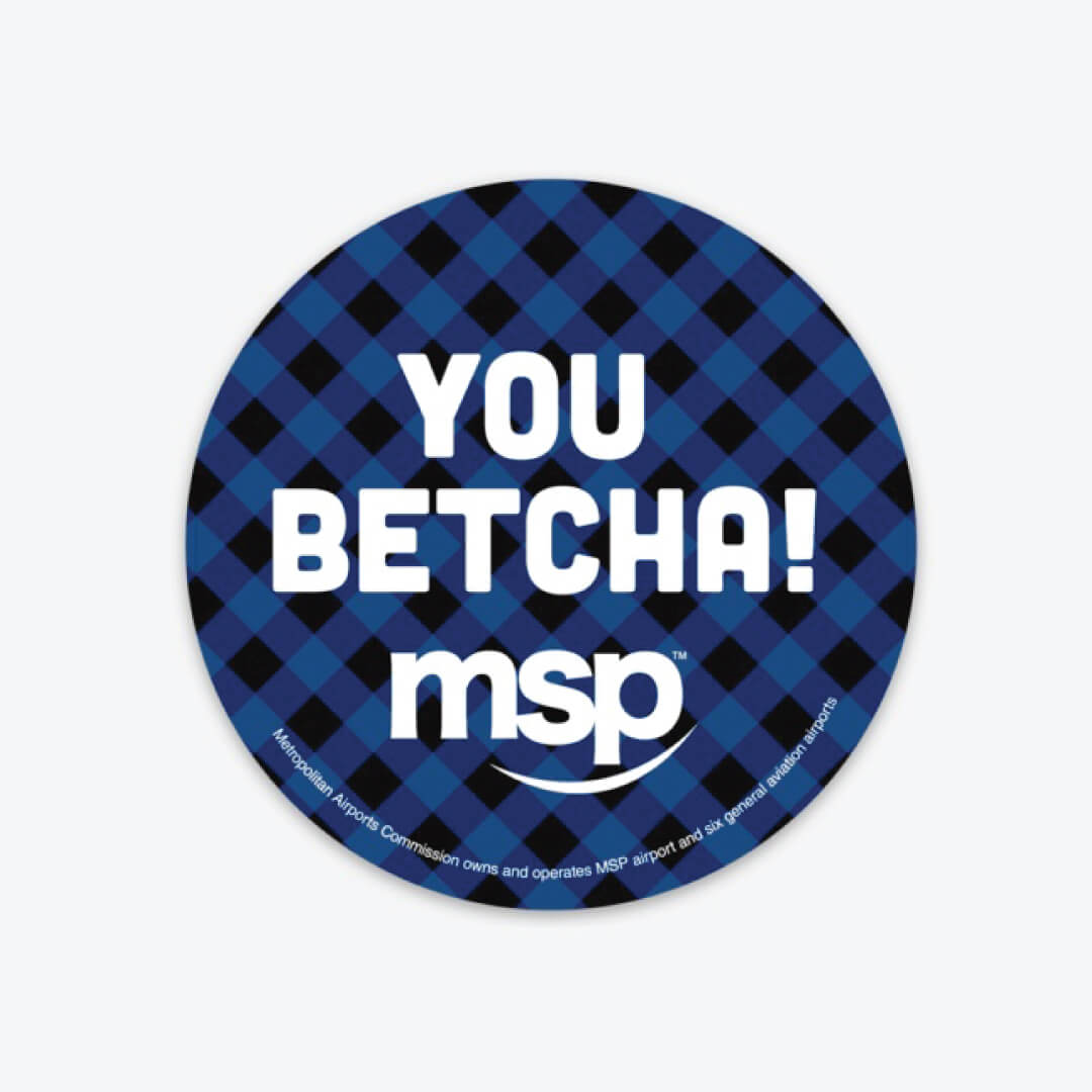 Oh for cute. Of all the Minnesota-isms, the classic “You Betcha” is the one that shows up in the happiest ways, from someone helping you find the shortest security line to the “Ope!” boost that gets your carry-on into the overhead compartment. A nod and a smile for your water bottle, laptop or journal; permanent UV-coated matte-finish vinyl sticker is 3”.