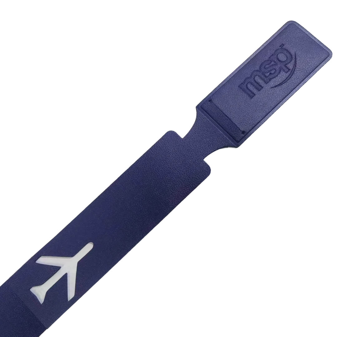 MSP Faux-Leather Luggage Tag - Blue Spot your bag instantly — and make sure it’s got your info securely attached no matter how far you’ve traveled. This sleek faux-leather luggage tag has a cool airplane cutout plus an embossed MSP logo design plus rugged details; you’ll love the peace of mind knowing all your contact info will be easy to find.