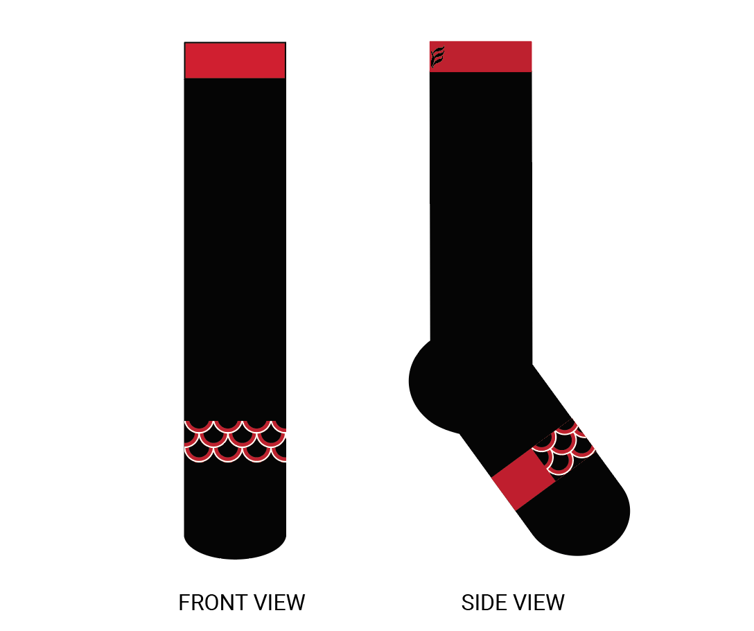 Tall Black with Red arch crew socks with color contrasting Red arch band for added support and fit. Mapped Terry Bottom for supreme comfort all day. These are a tad taller than your average crew socks making them even more versatile and comfortable. These will quickly become your favorite of pair socks.